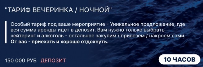 ТАРИФЫ НА АРЕНДУ ПРЕМИУМ ЯХТЫ