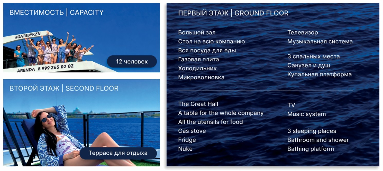 - Гости ходят по яхте, смотрят виды, усаживаются за стол и начинают трапезу.